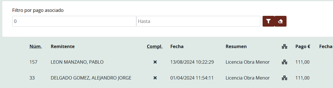 Nuevo filtro para pagos asociados a entradas de registro asociadas a un trámite de la sed electrónica.